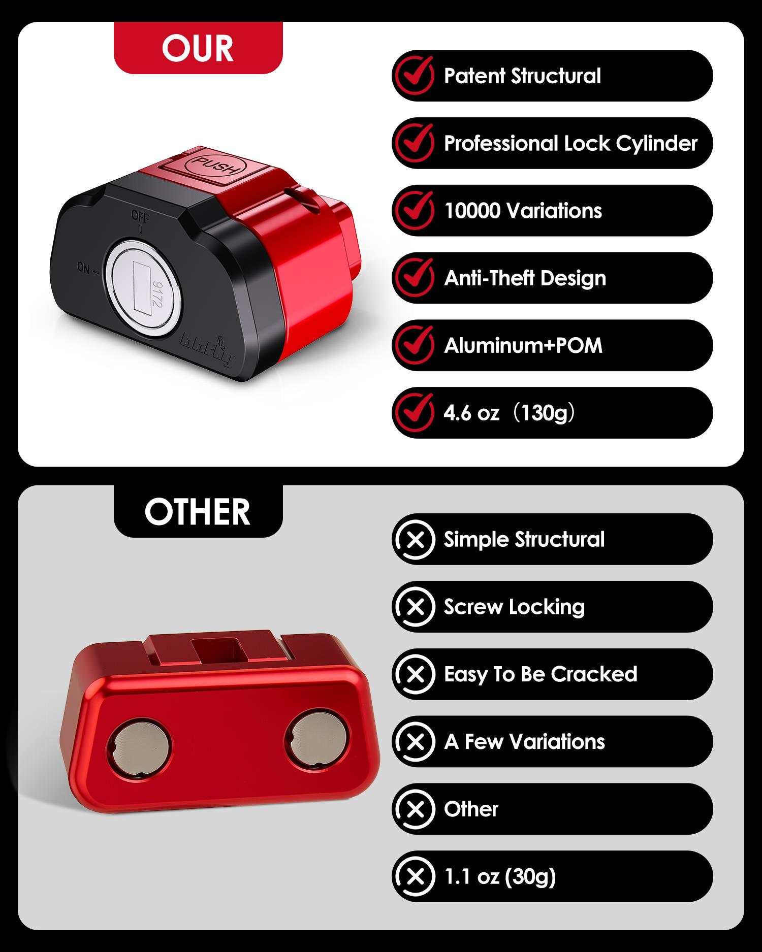 At the heart of our OBD lock is a state-of-the-art internal lock cylinder, featuring precision-engineered blades that allow for an astonishing 10,000 unique variations. Each lock comes with its own set of keys, matched to a specific code number, ensuring that no two locks can be opened by the same key. This level of customization provides ironclad security, far surpassing the generic solutions found in competing products. Forget about those flimsy screw-fixed locks that claim to be "anti-theft" – our research shows they can be cracked in moments using everyday tools like a small pair of tweezers. Our key-operated mechanism requires physical possession of the correct key to unlock, adding a layer of mechanical defense that's impossible to hack electronically.